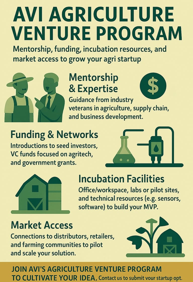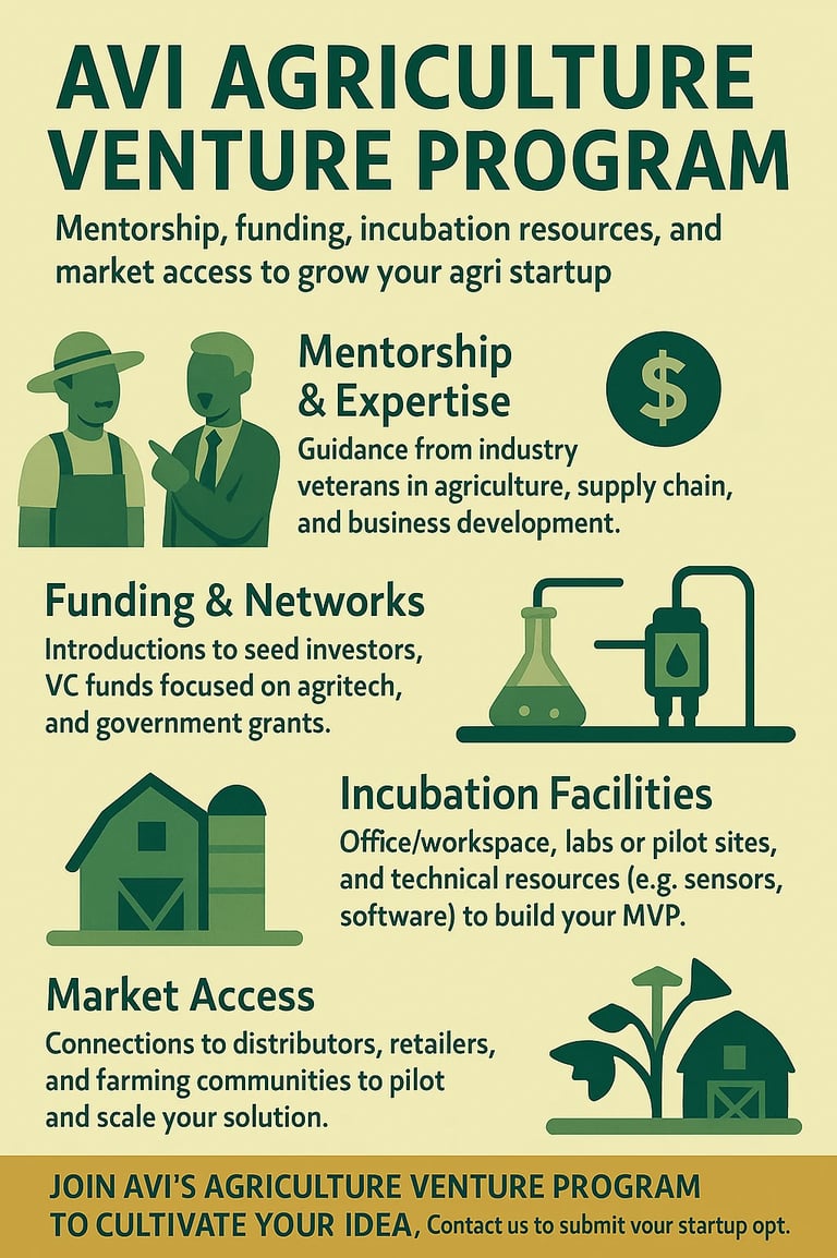 Startups often follow a lean innovation cycle: ideate with farmer and market input, build prototypes (e.g. test IoT devices or farm pilots), then validate and iterate through field trials. Comprehensive support for agri startups by AVI venture studio